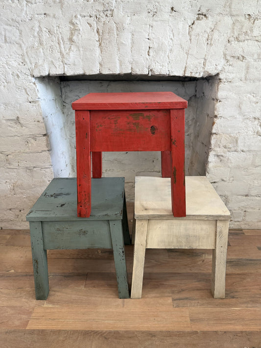 DIY Chippy Salvage Wood Stools - Red, White & B...