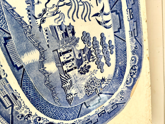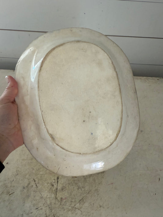 Antique ironstone blue Willow platter as is
