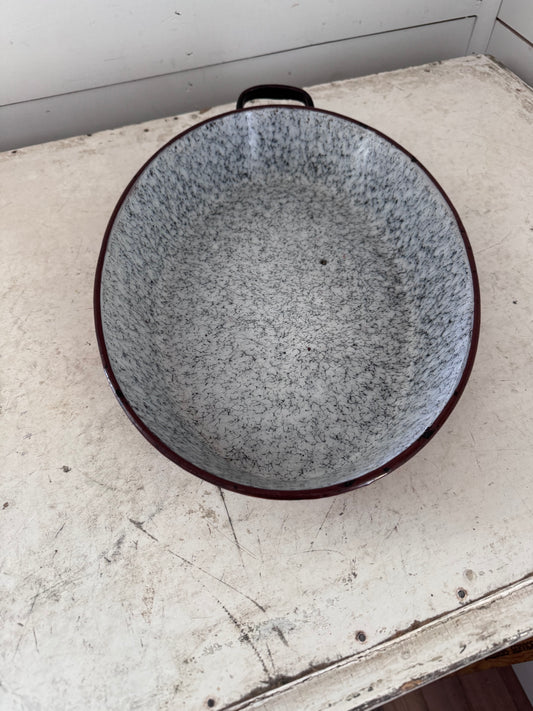 Marbled Brown Enamel Caserole Dish - Missing one handle
