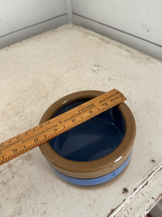 BRETBY Vintage Stoneware Pottery Crock/Pet Bowl Tan w/Blue Stripe England