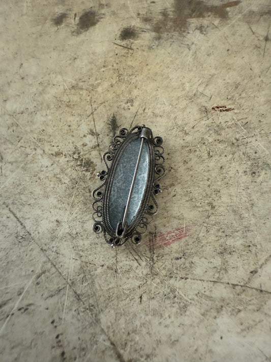 Vintage Silver Filigree Border Porcelain Floral Pin or Brooch
