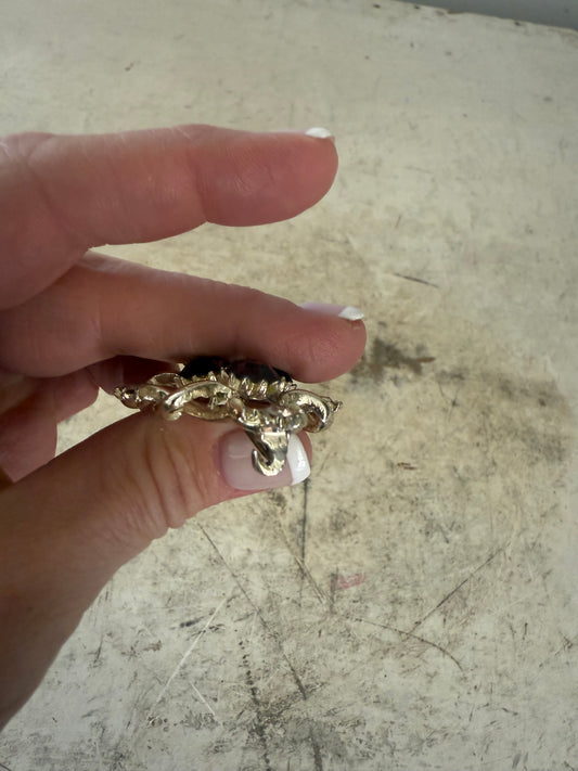 Vintage Cabouchon brooch with gold plating and blue enamel