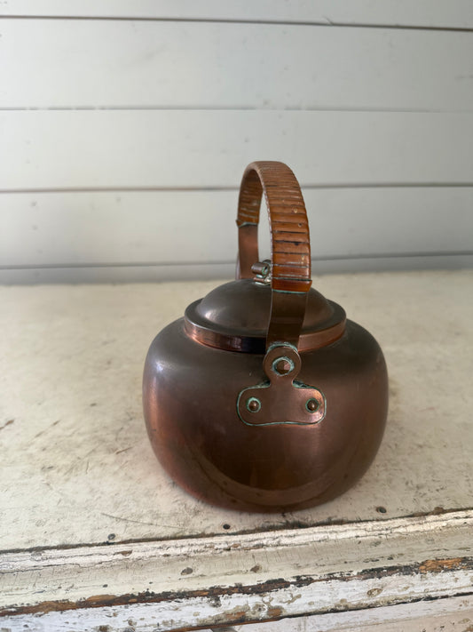 Antique Copper Tea Kettle With Rattan Handle, Made in Norway