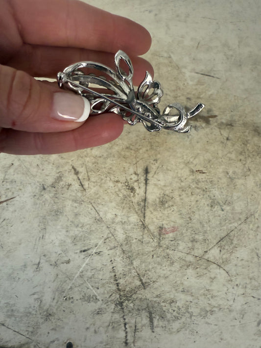 Vintage brooch with purple and clear rhinestones - clasp is broken