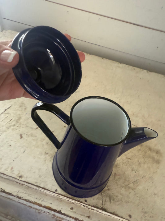 Antique Eastern European Cobalt Enamel Cofee Pot