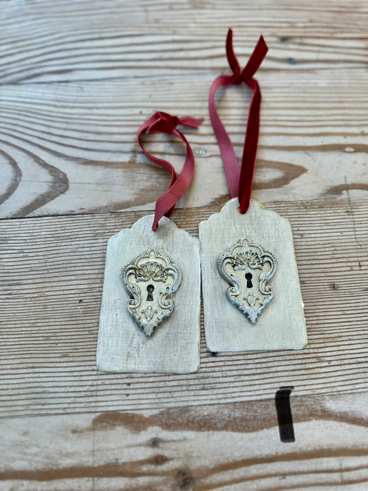 Handpainted Brass Appliqué Christmas Tag Ornaments