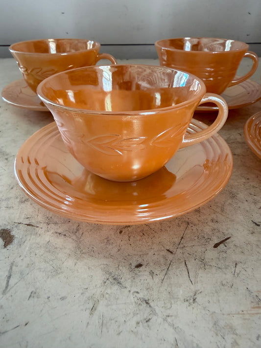 Vintage Fire-King Peach Luster teacups and saucer each set sold seperately