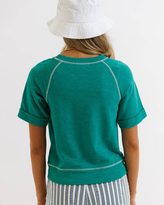 Le Weekend Blue Short Sleeve Graphic Statement Tee