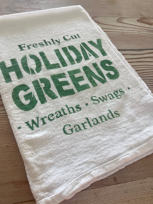 Holiday Greens Hand Stenciled Flour Sack towel