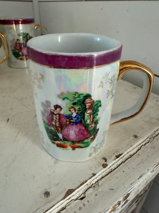 Lusterware Coffee Mug Yusui Imperial Japan Courting Couple Porcelain 24KT G.P. - sold individually