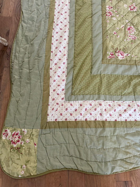 Queen Floral Green Quilt