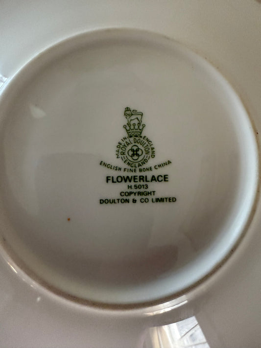 Royal Dalton flower, lace, teacup and saucer