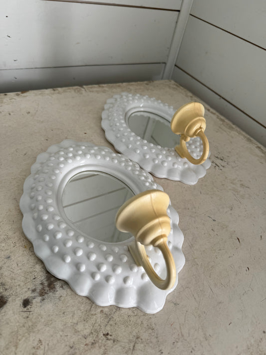Set Burwood Wall Mirror Candle Holder 2717 Circa 1985 White Plastic 10x7 Inches