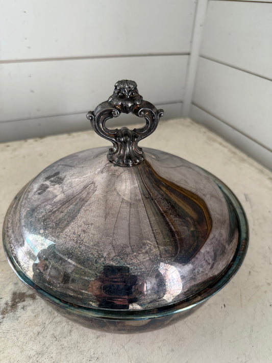 Silver Plate Warmer with lid and wood Handle FB Rogers Co