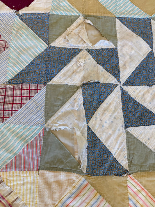 Twin Size Triangle Handmade Pieced Quilt as is