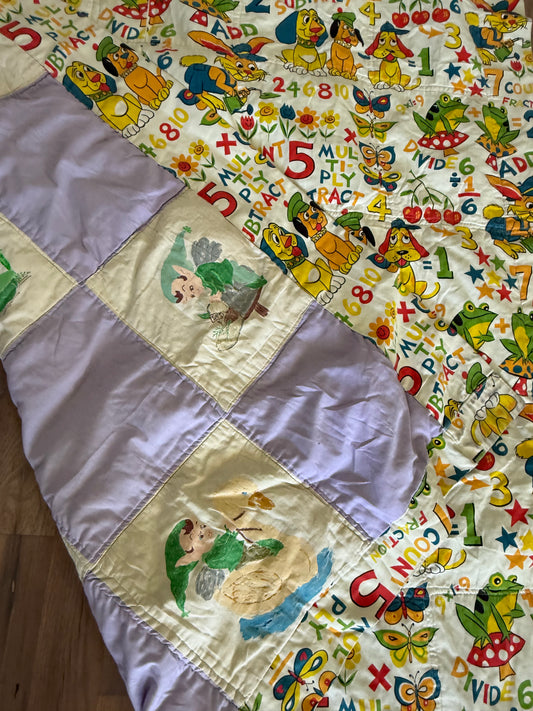 Twin Vintage 1970’s Baby Mathematic Quilt - hand painted on back
