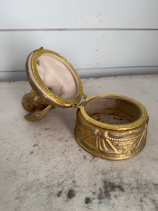 Vintage 1970 Gold Angel Winged Cherub Trinket Jewelry Box