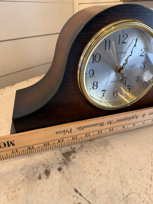 Working-Vintage Linden Electronic Strike Chime Mantle Wooden Clock back missing