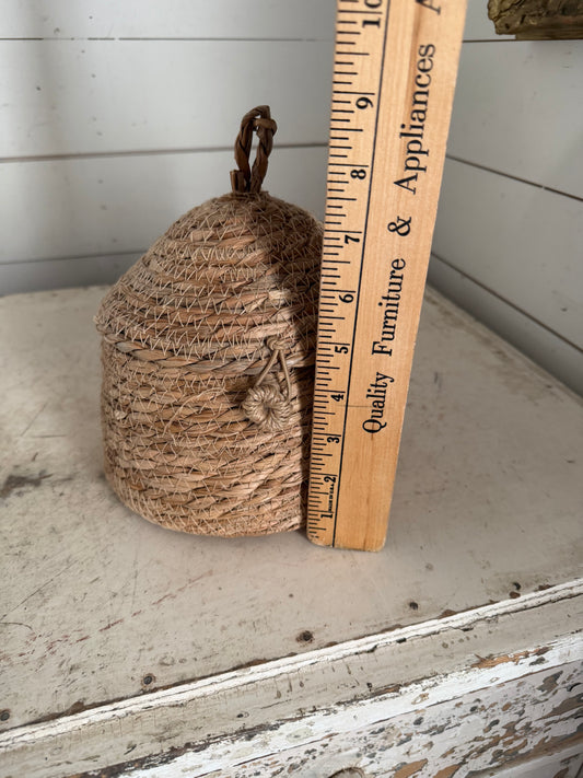 Woven Bee Hive Wicker Basket with Loop