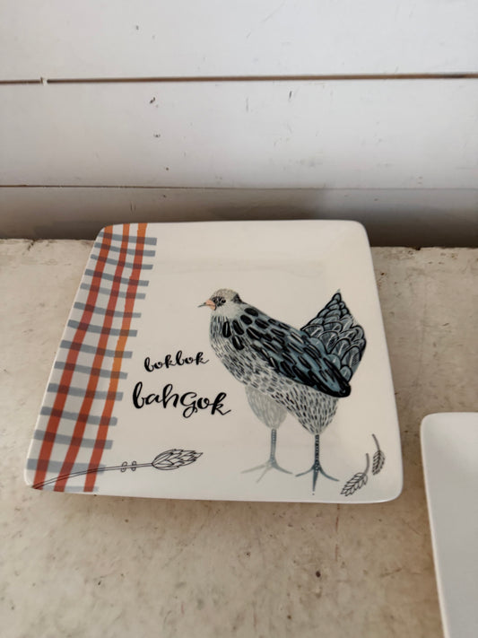 Zoe Ingram Chicken Ceramic Serving Platter Creative Co-op 11 X 11 Inches - sold individually