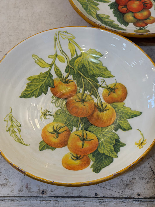 Italian Pottery Plates Tomatoes Williams Sonoma SET of 3 - Terracotta showing in chips