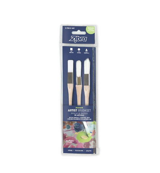 Zibra Artist Brush Set | Medium | 3 Brushes Included!