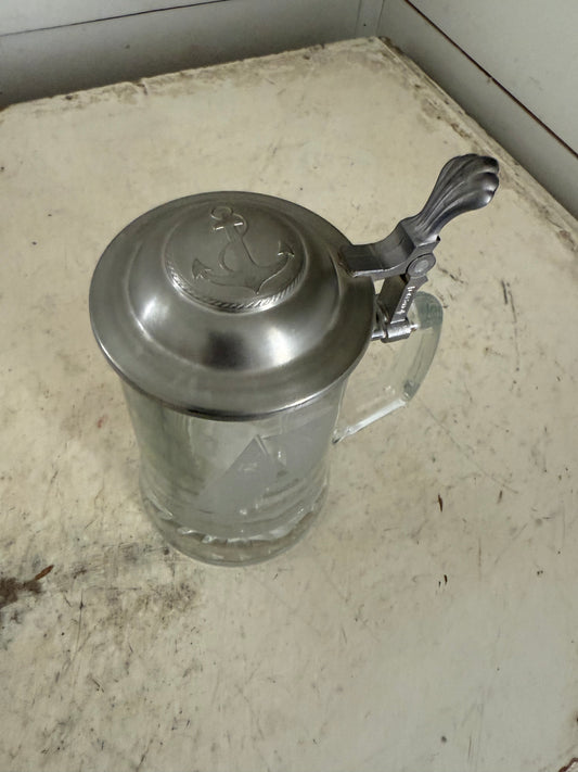 Vintage Glass Pewter Lid Stein Alwe W. Germany America's Cup Series 1 Sail