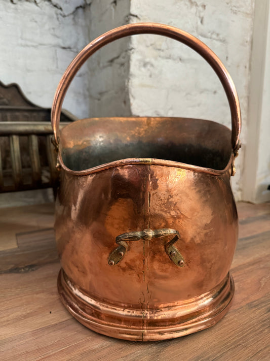 Antique Victorian quality copper helmet coal scuttle with copper handle