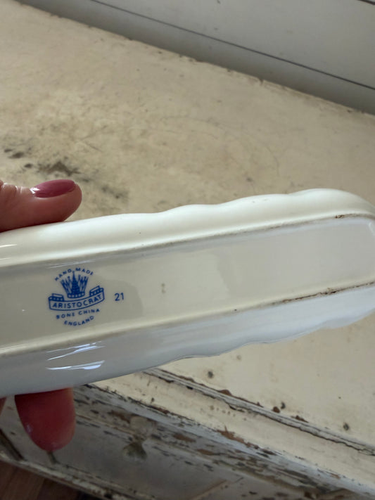 Hand Made Aristocrat Bone China England Nut or Mint Tray, Blue Flowers