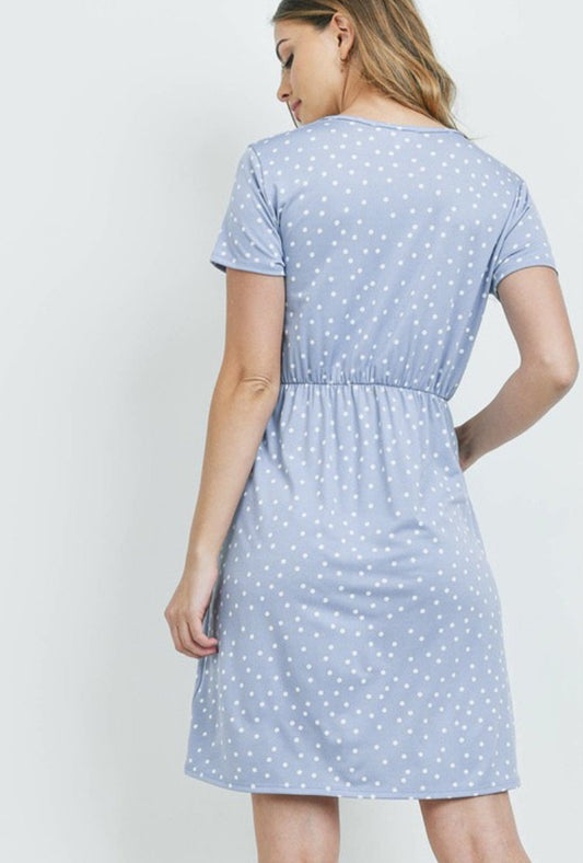 Dynamic Swiss Dot Short Sleeve Smocked Mini Dress