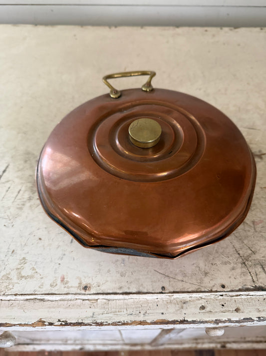 Antique Copper Hot Water Bottle With Brass Lid and Handle