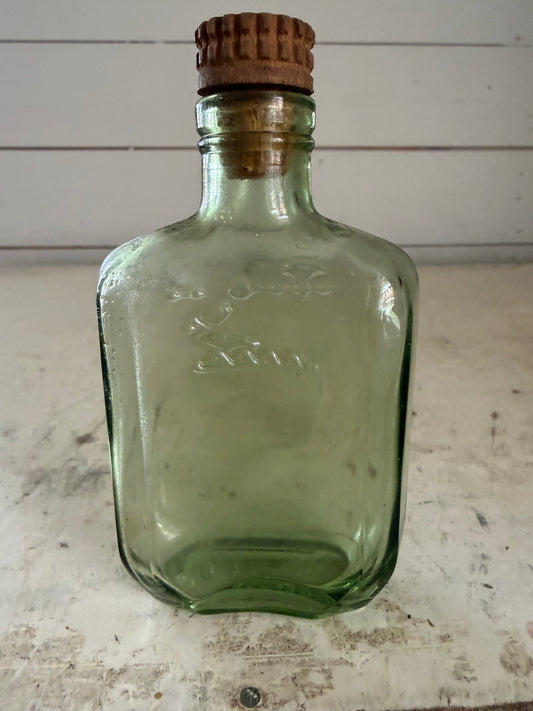 Antique Hennessy Green Glass Flask with grooved Cork Stopper: Embossed Bras Armé French Barware
