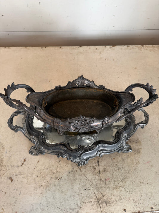 antique French jardiniere, decorative centerpiece or planter, with a mirrored stand
