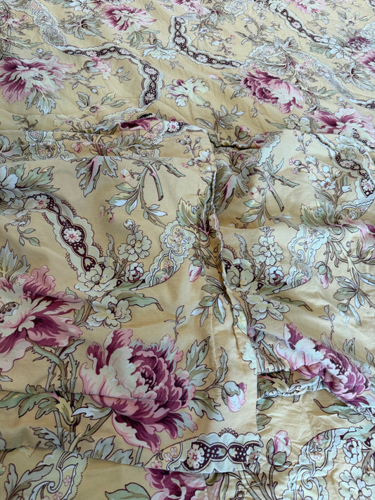 Vintage French Floral Garland Cotton or Blend Fabric~ Maize Yellow Rose Sage Queen Comforter and two shams