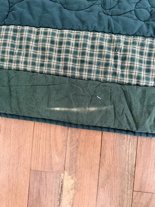 Green and Red Hand Quilted Equestrian Quilt - King Size - Homemade as is
