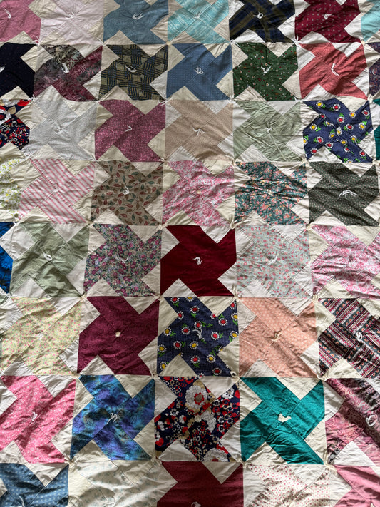 Antique Patchwork Quilt crazy Pinwheel Design Cotton Hand Pieced Twin