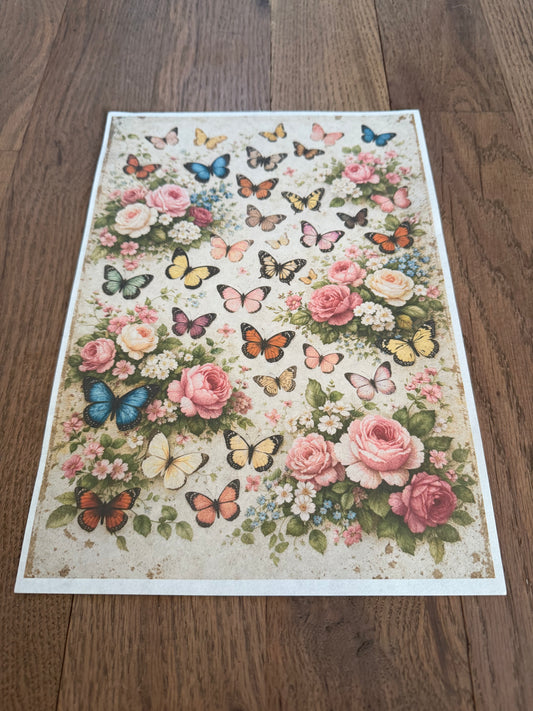 Butterfly & Nest with Moody Floral Arrangement | JRV Large Rice Paper 31-1/2x23-5/8”