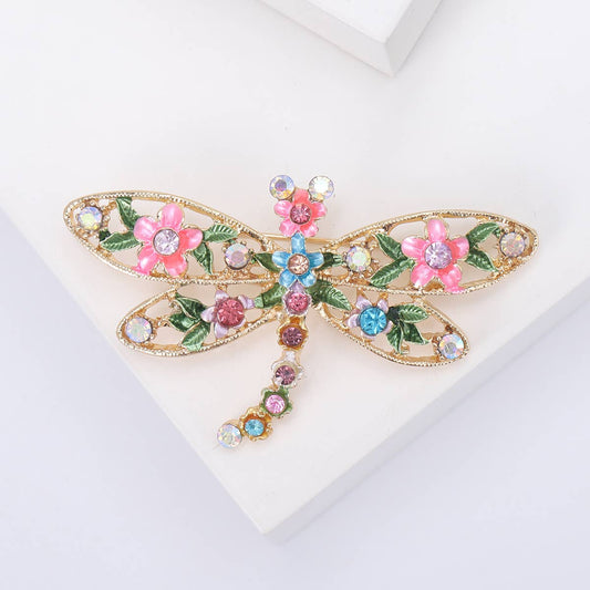 Floral Dragonfly Brooch, Colorful Rhinestone Insect Pin
