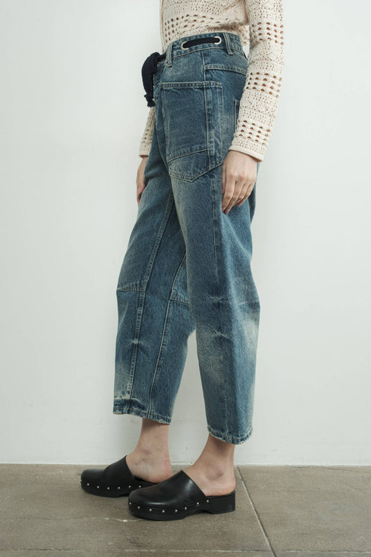 Barrel Denim Pants with Eyelet Waist: Medium Wash