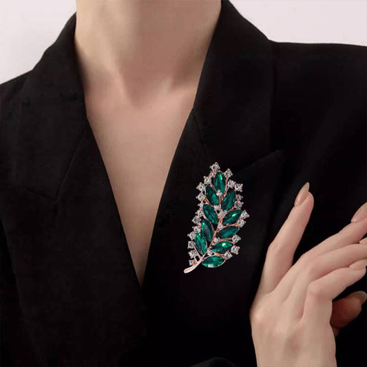 Chic Colorful Crystal Rhinestone Leaf Brooch
