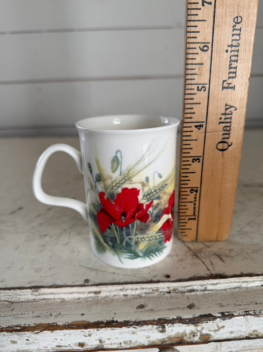 Roy Kirkham "Poppy" fine bone china mug featuring red poppies and wheat - England