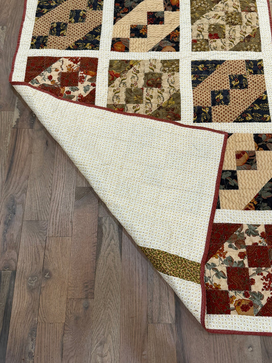Green Floral Square hand made Pieced Quilt Queen - In New Condition