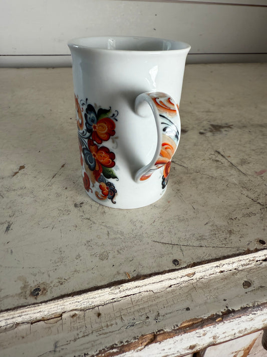 NORWEGIAN RED TONES ROSMALING CERAMIC MUG SCANDINAVIAN
