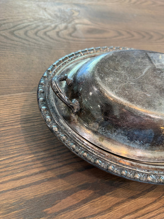 Vintage Silver Plate Rogers Bros Covered Oval Serving Tray Dish
