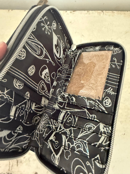 Sakroots Wallet Clutch Organizer Coated Canvas Metallic Songbird Black