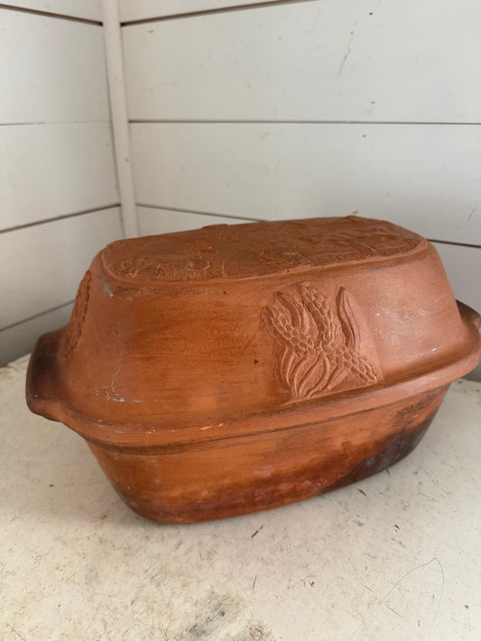 ABC Terra Cotta Covered Casserole Dish Terracotta Dutch Oven Clay Cooking Roaster - has chip as shown