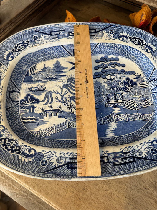 Antique Ironstone 1800’s English Staffordshire Blue Willow Transferware Platter