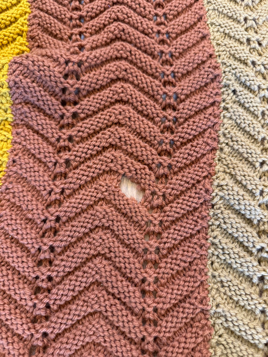 Vintage 70’s Burnt Orange, Black, Blue and Yellow Afghan