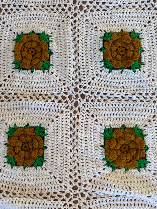 Full Size Granny Square Afghan Cream, Mustard and Green