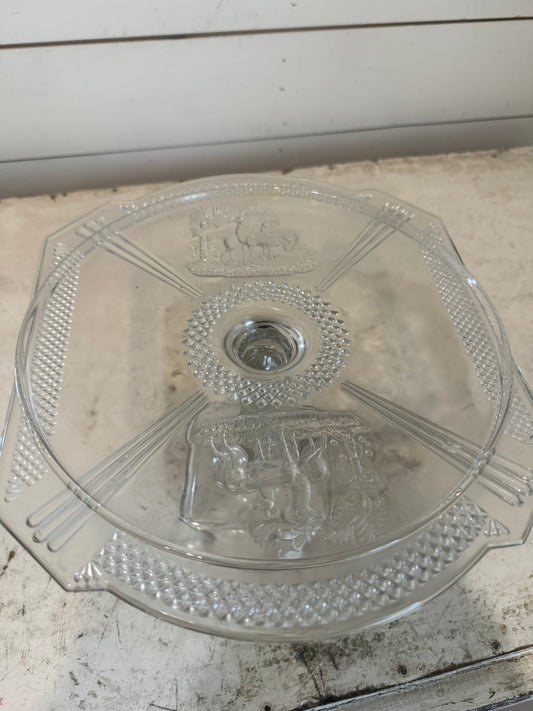 Mid 1800’s Pressed Glass Cake Plate with Deer